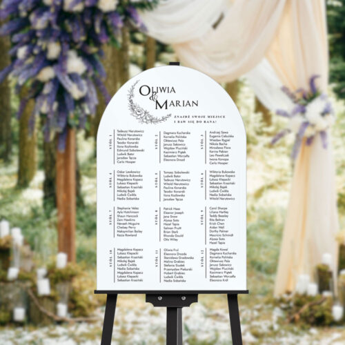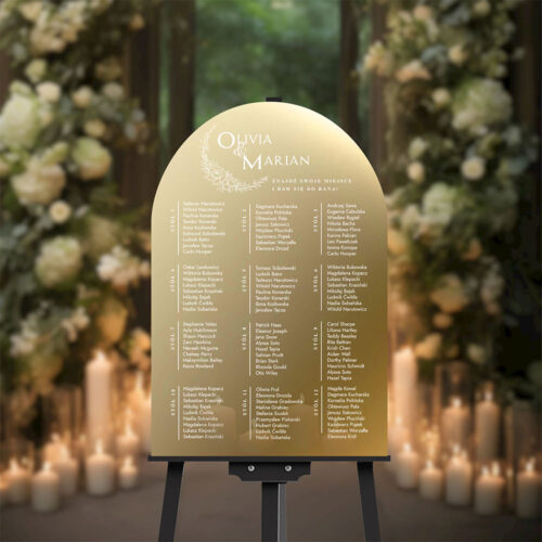 Plan stołów weselnych – wykonany z akrylu, pełni funkcję dekoracyjną i praktyczną, pomagając gościom łatwo odnaleźć swoje miejsce na Twoim weselu.