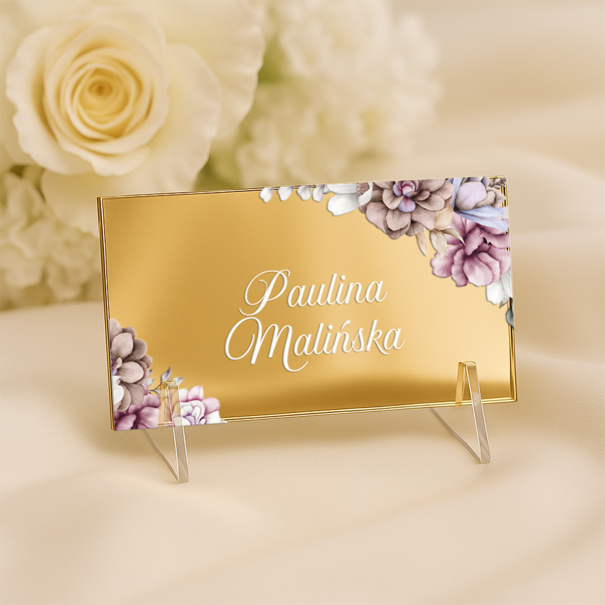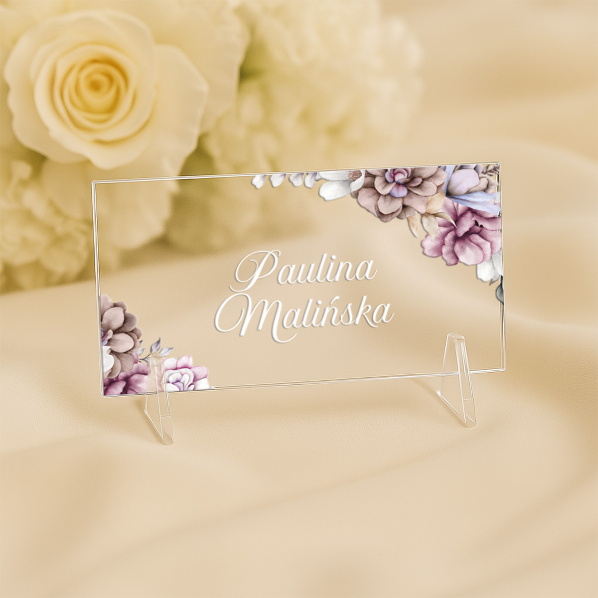 Winietki ślubne akrylowe – wyjątkowa oprawa Twojego przyjęcia weselnego. Dopasowane designy do zaproszeń ślubnych na pleksie.