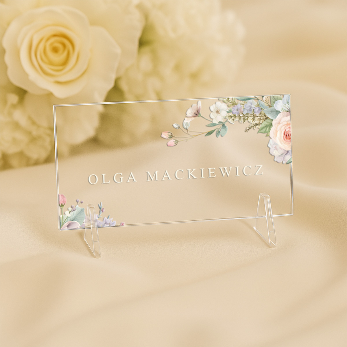 Winietki ślubne akrylowe – wyjątkowa oprawa Twojego przyjęcia weselnego. Dopasowane designy do zaproszeń ślubnych na pleksie.