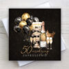Zaproszenia na 50 urodziny w luksusowej czarno-złotej kolorystyce z balonami.